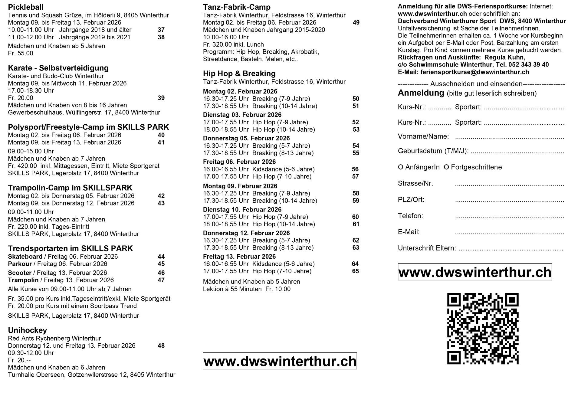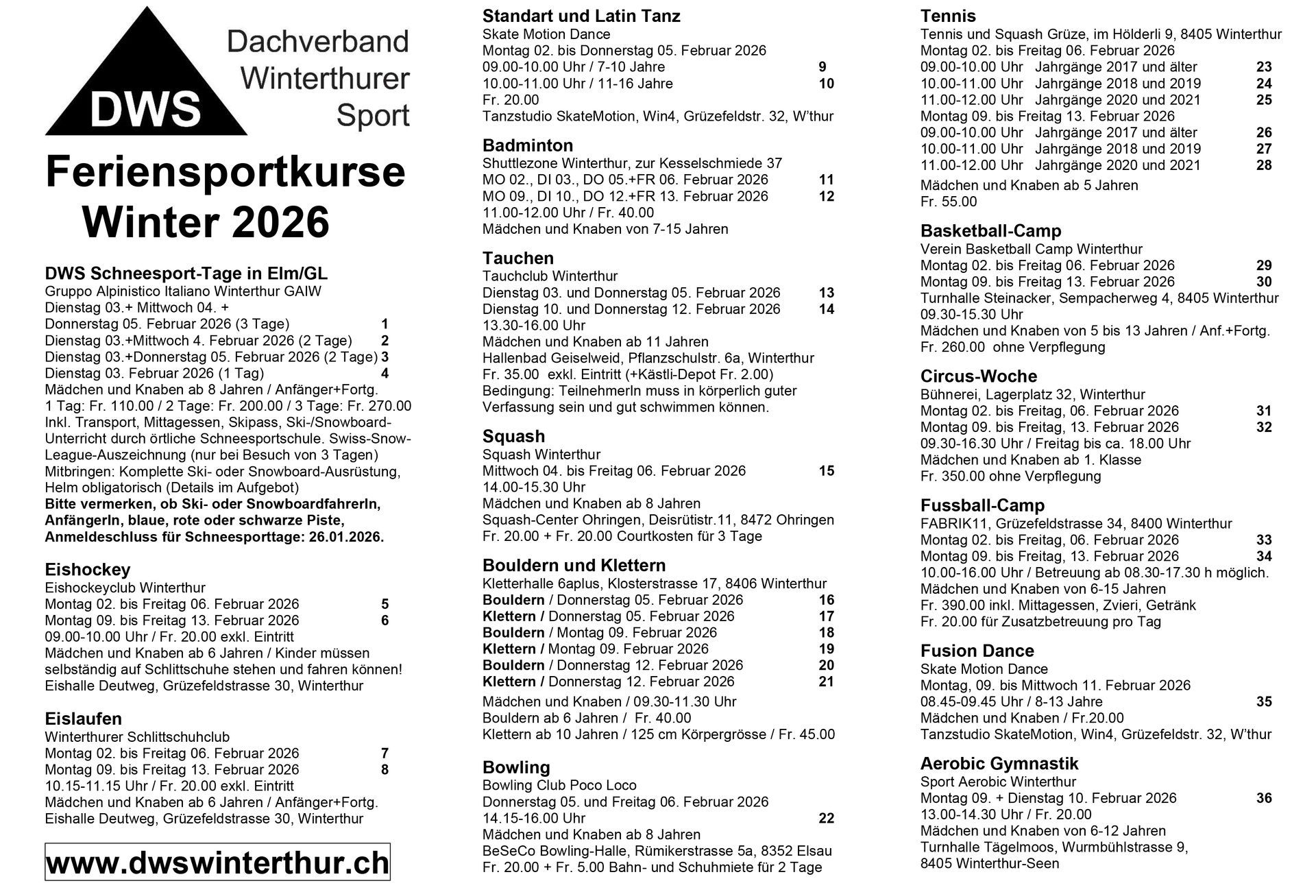 Hier ist das Sportprogramm des Dachverbandes Winterthurer Sportvereine:
